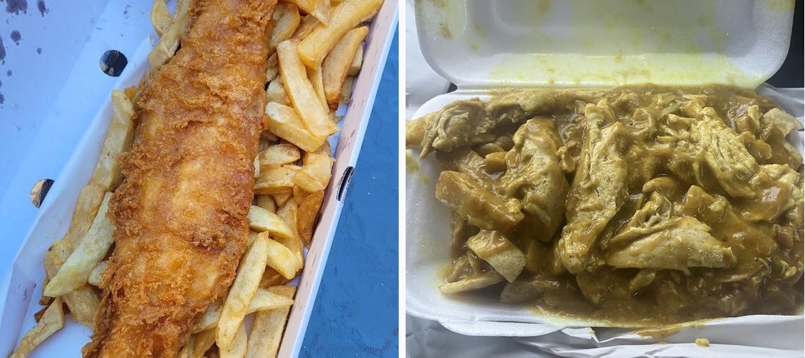 Definitely start with their fish and chips; the cod is huge and cooked fresh while you wait. Many rave about the homemade chicken curry, particularly the fruity curry option. Don't overlook their chip roll with curry sauce; it's absolutely delicious.